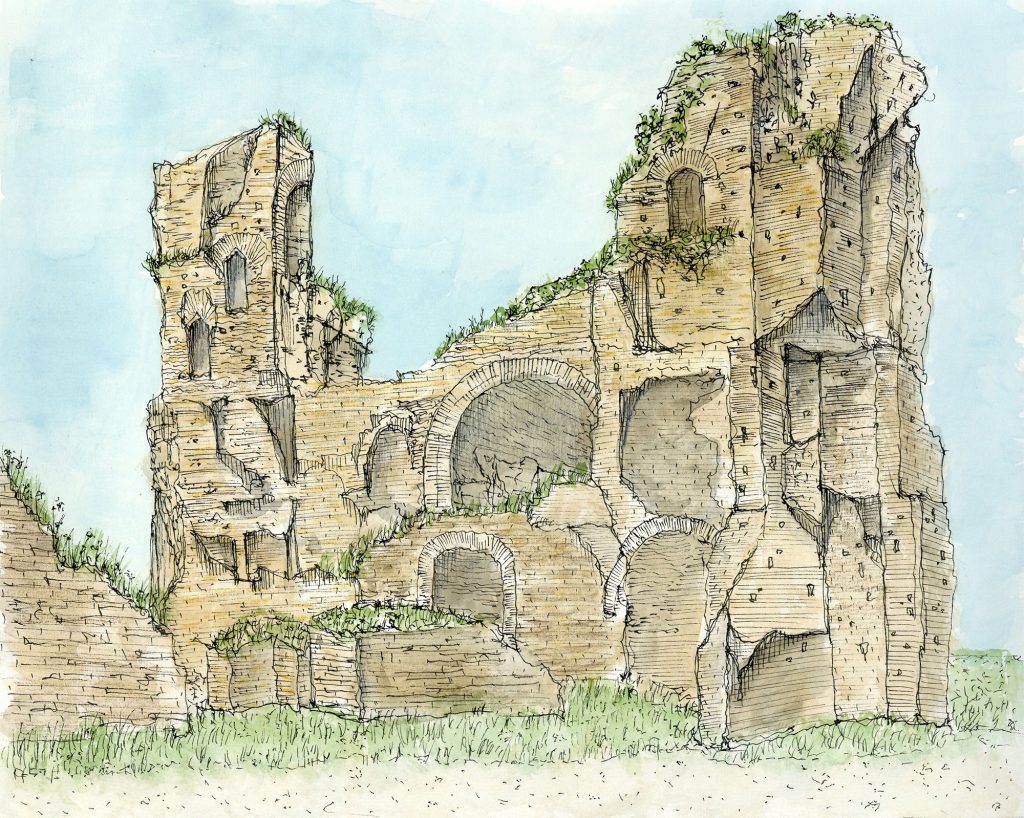 3月5日早朝に関西国際空港を出発してインチョン空港でのトランジットを経て、3月5日の夜にローマ・フィウミチーノ空港に到着しました。翌日の3月6日からローマ市内のコロッセオ、フォロ・ロマーノ、カラカラ浴場、ローマ水道橋公園を見学、スケッチしました。
