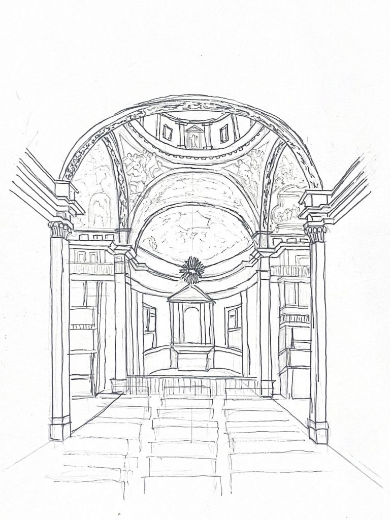 学生のスケッチ サンタンドレア・アル・クイリナーレ聖堂