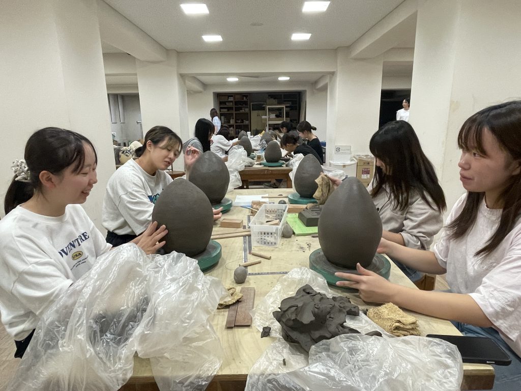 卵の形状を観察したのち、手びねりの技法を使って土の卵を制作した