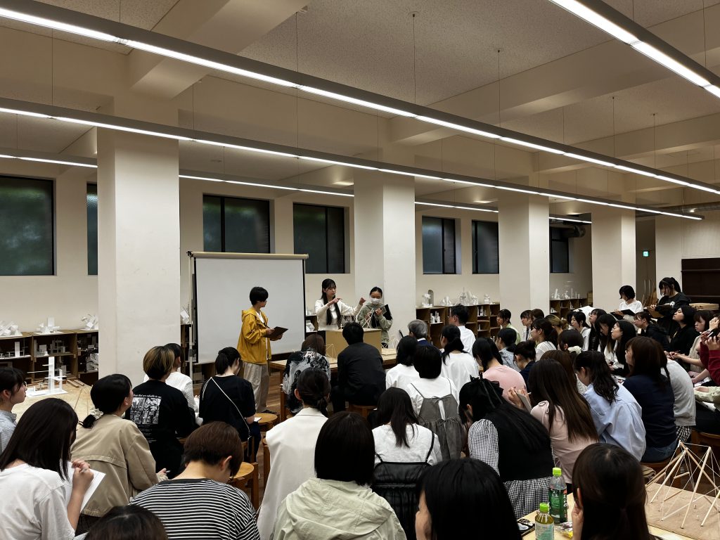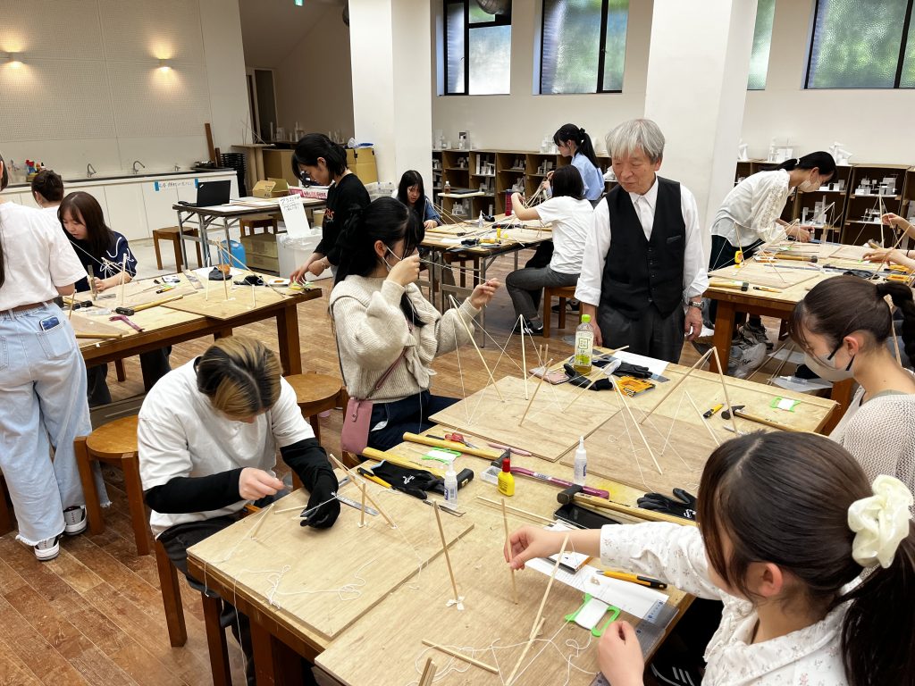 全体にまとまりを持たせるため、基本的には長めの木材を使用しているが、空中に浮遊するような印象を与えるために短い木材も組み合わせた作品