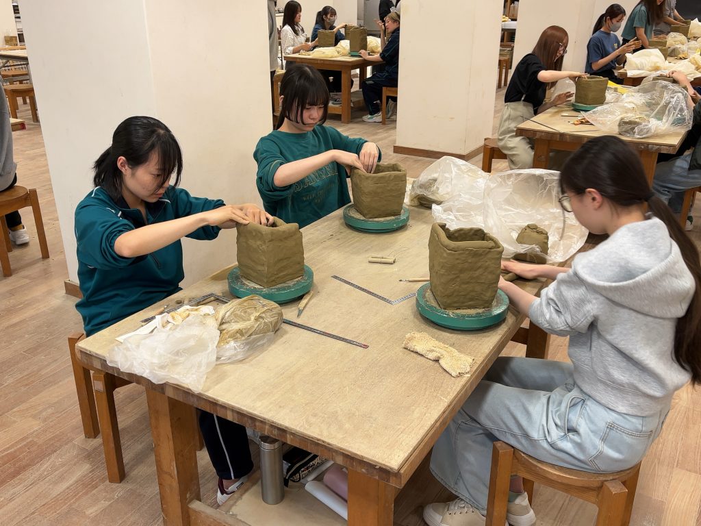 四角筒の制作を通して、土の性質と加工方法を体得