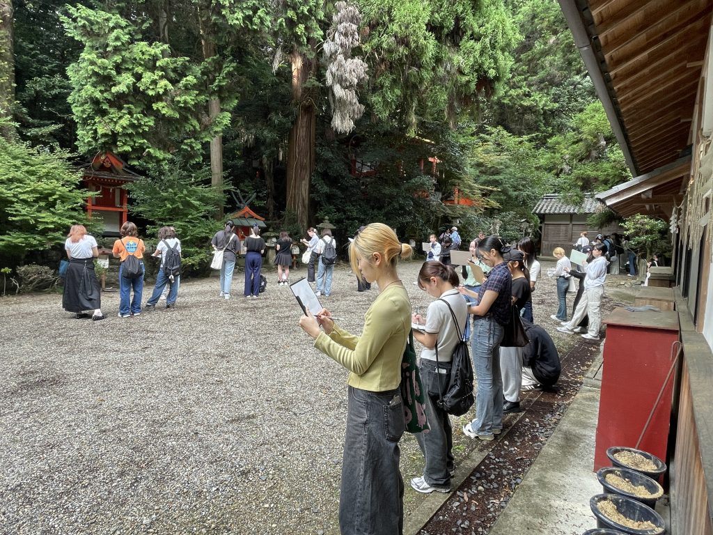 氏子総代の方から、夜支布山口神社の由来や、この地域の慣習について説明を受ける